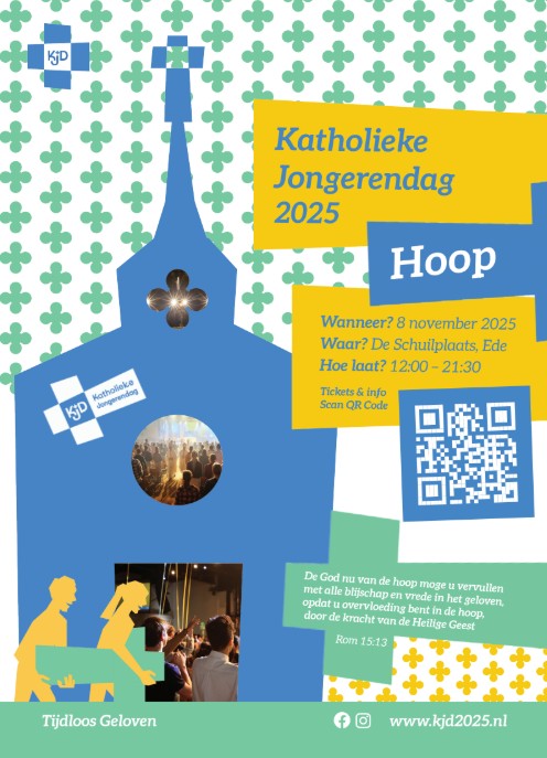 Op zaterdag 8 november 2025 houdt Jong Katholiek, de jongerenorganisatie van de Rooms-Katholieke Kerk in Nederland, opnieuw een Katholieke Jongerendag (KJD). Vanuit heel het land zijn jongeren tussen 16 en 30 jaar welkom in De Schuilplaats in Ede om hun geloof te beleven en andere jongeren te ontmoeten. Het thema is ‘Hoop’ en sluit aan bij het Jubeljaar van Pelgrims van Hoop.